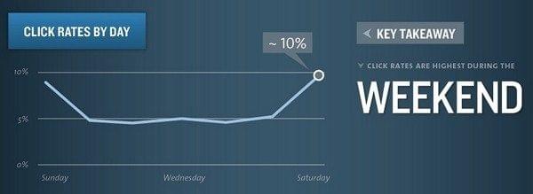 Je moet dit voor jezelf en jouw doelpubliek testen, zodat je de beste tijd gebruikt om de mensen aan te spreken die jou de meeste conversies geeft. Maar veel mensen nemen aan dat dit DONDERDAG is en beginnen blindelings.