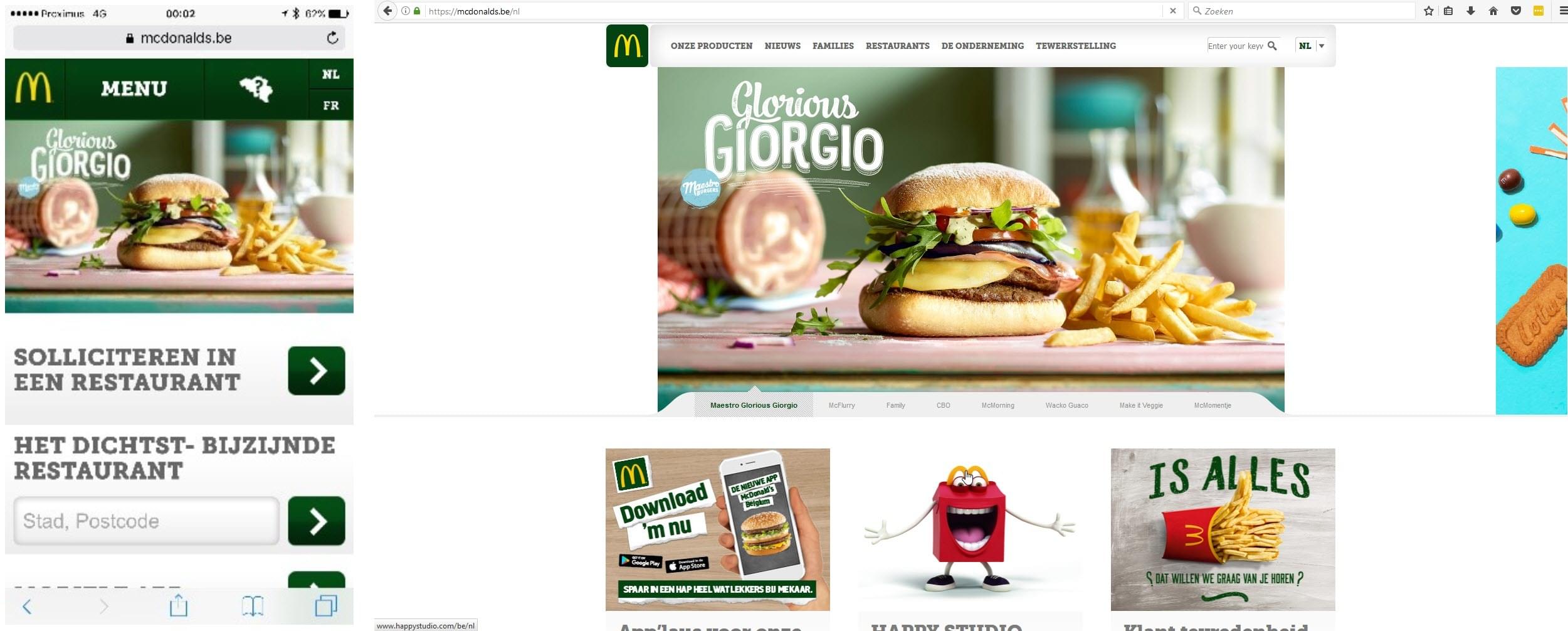 Als je kijkt naar McDonalds is er een enorm verschil tussen website en smartphone weergave.