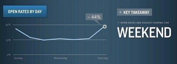 Dit behandelt het percentage van Click Through Rates en Open Rates voor verschillende e-mail types. Maar natuurlijk kan je het nog moeilijker maken en opnemen dat verschillende e-mail types weer andere resultaten geven afhankelijk van wanneer ze gestuurd worden. Bijvoorbeeld: